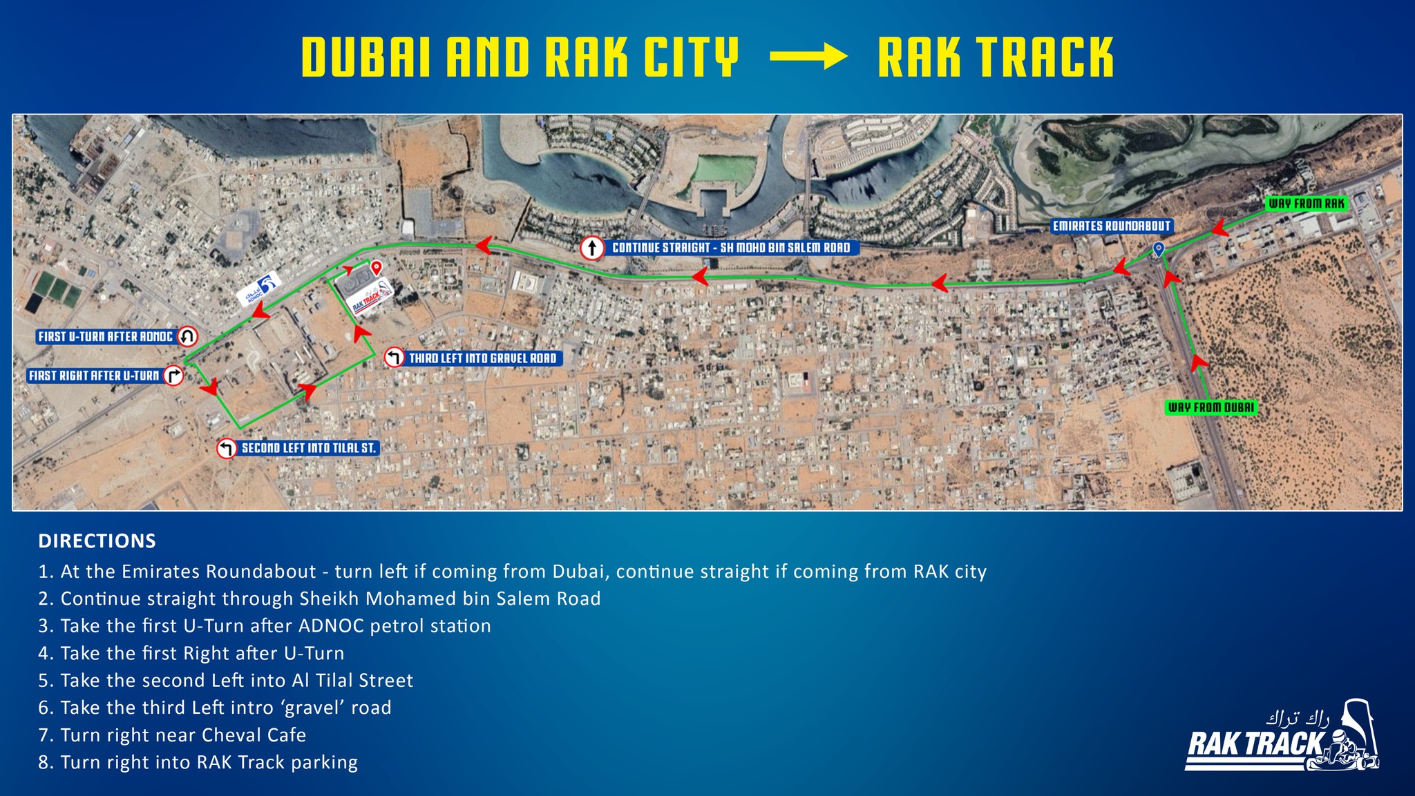 RAK TRACK is a karting circuit located in the Emirate of Ras Al-Khaimah in the United Arab Emirates. You can experiance both rental/hire karts and professional racing karts at our track.